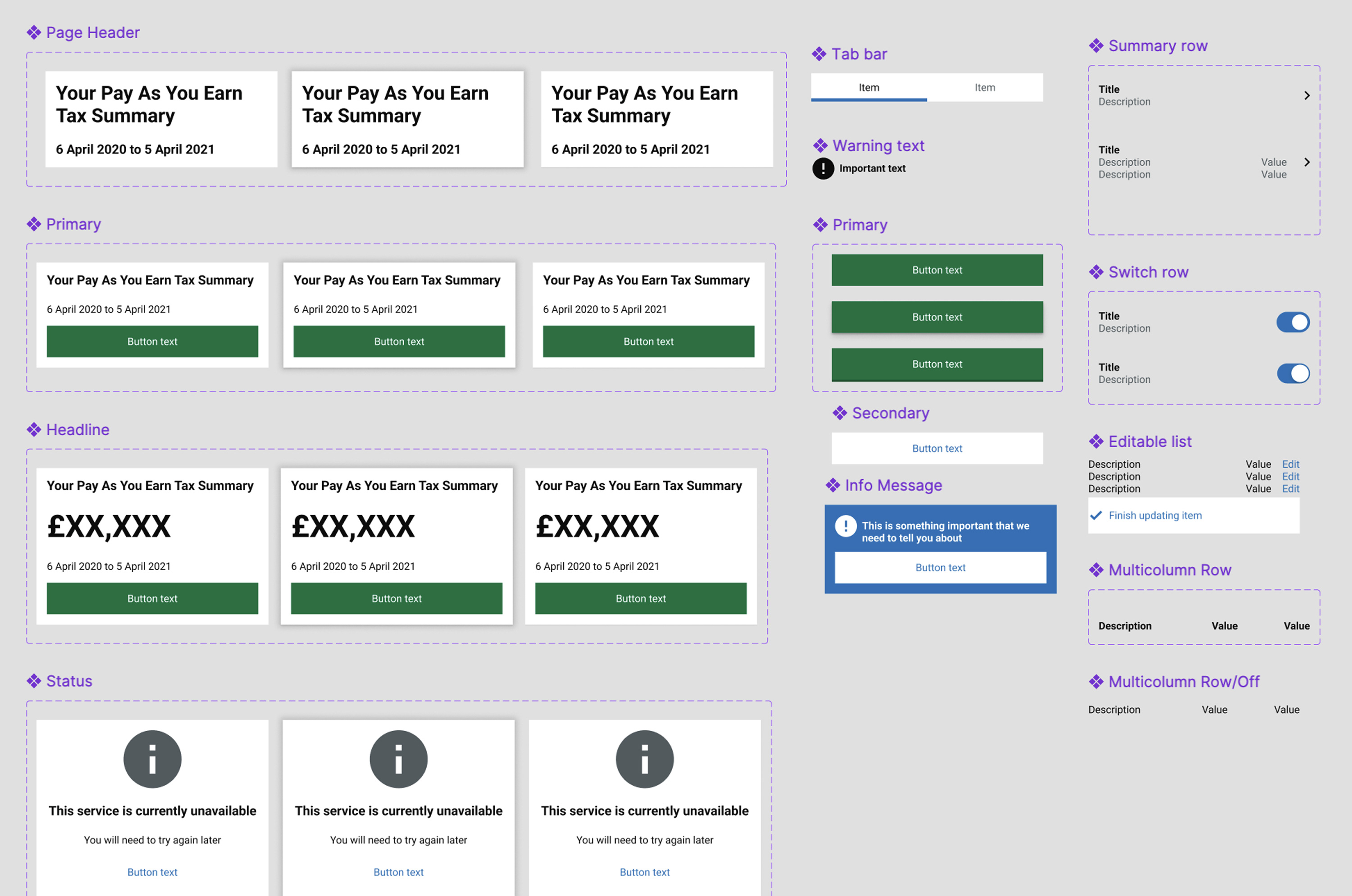 I was the Product & Service Design Lead on the HMRC Mobile App. When I joined the HMRC App team in April 2018 the overall experience was very fragmented varying from screen to screen. One of the initial challenges I faced adding new services to the app was that there were no governing patterns to follow, so I set out to create some to build harmony across the app.