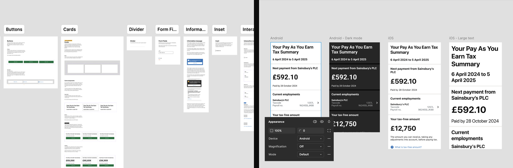 At the start of 2024 we found out Invision was off to the design tools graveyard so we rebuilt it in Figma. The new version brought with it a greater ability to quickly build for a variety of different screen sizes and accessibility features at the flick of a toggle.